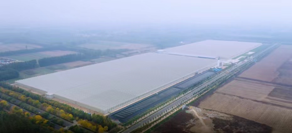 德州财金智慧农业产业园项目利用荷兰开发的独特物联网技术,采用国际领先的水肥一体化系统和自动控制系统,通过绿色生物技术和无土栽培技术生产不同品种的番茄,是亚洲单体面积最大的文洛式智能玻璃温室。